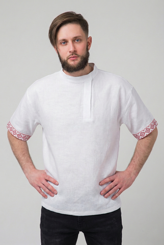 Косоворотка льняная с коротким рукавом к платью "Лебедь"