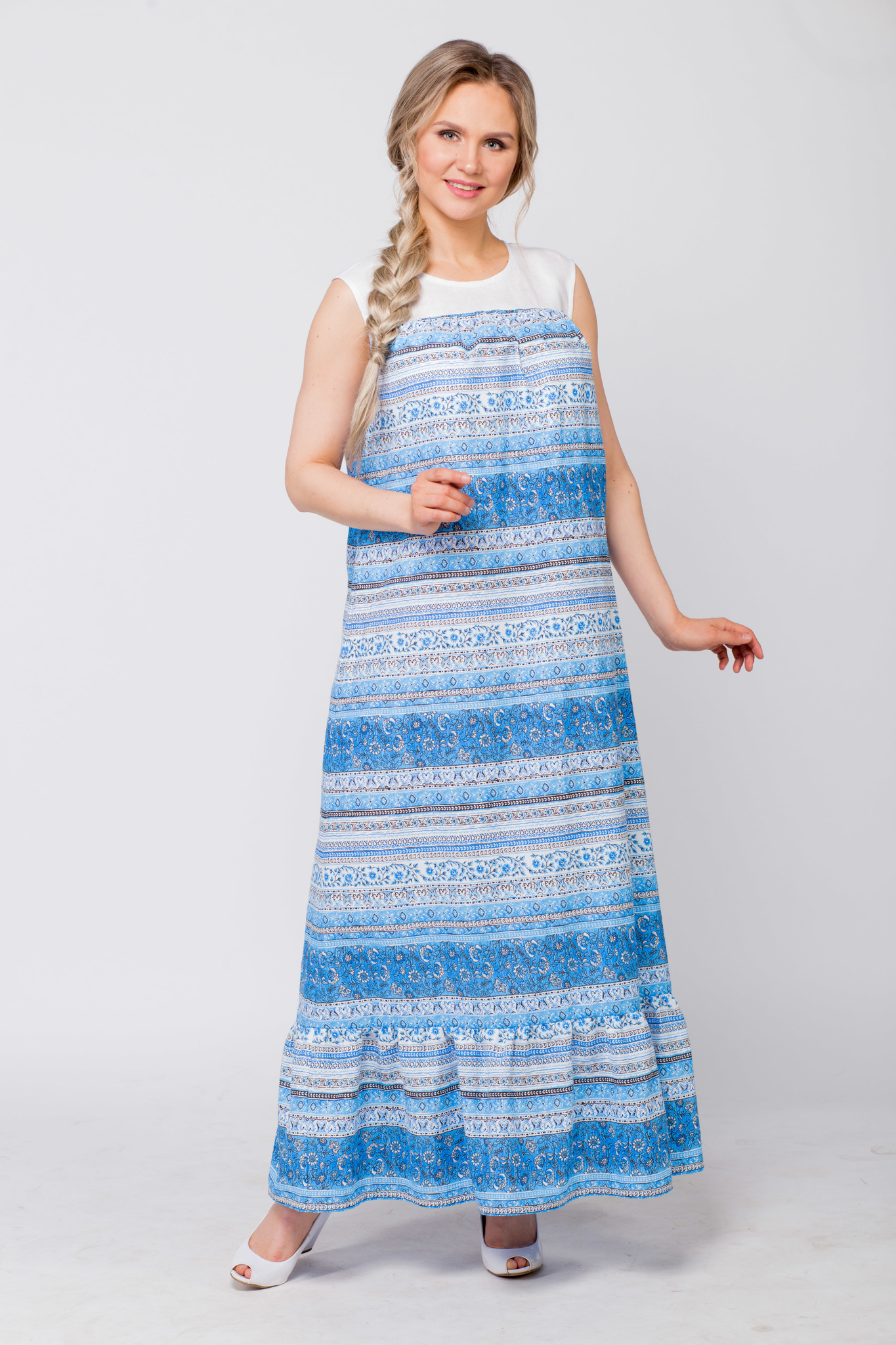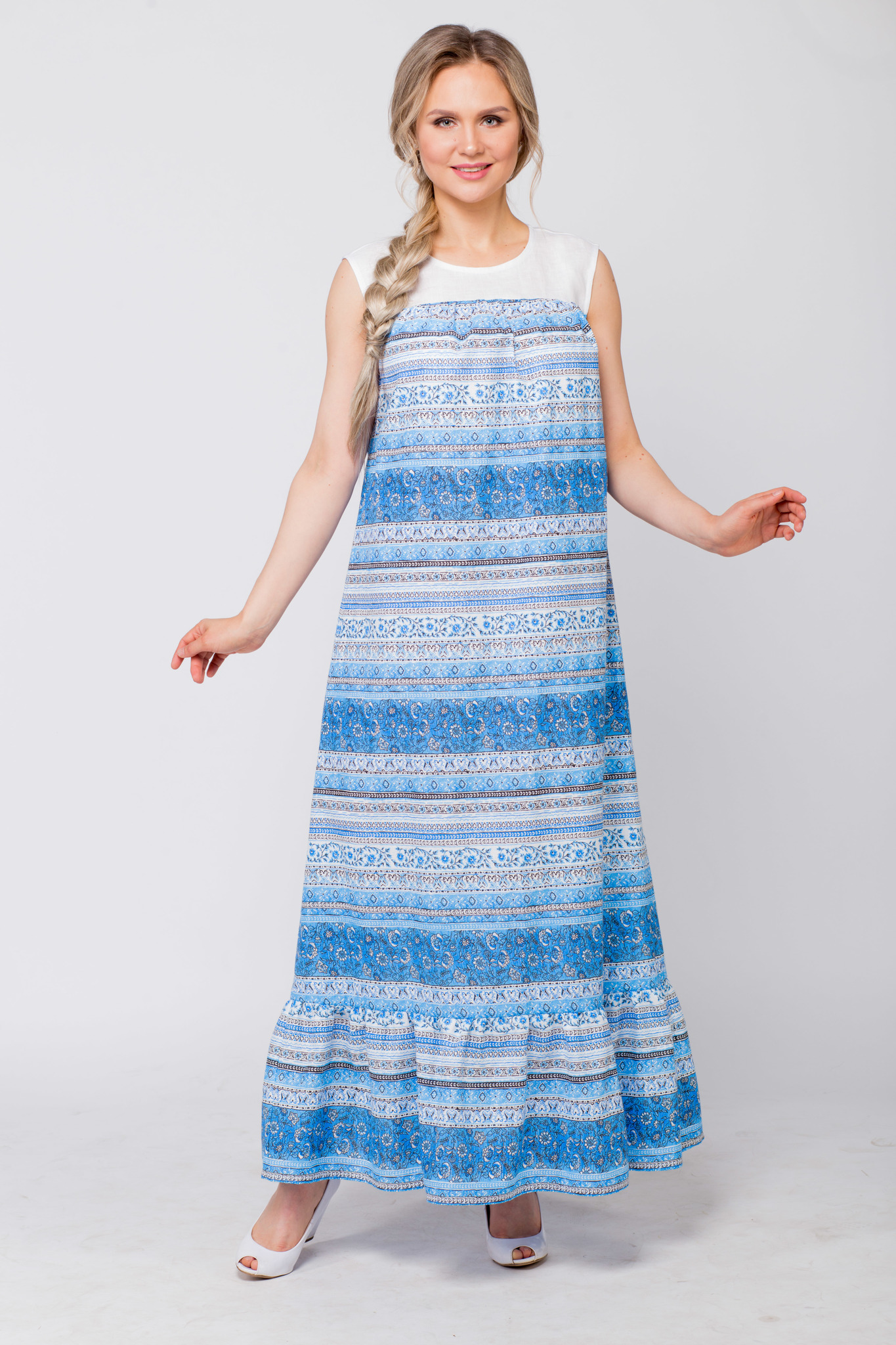 Платье Горная река из хлопкольна. Свободное, удобное, пояс в комплекте.