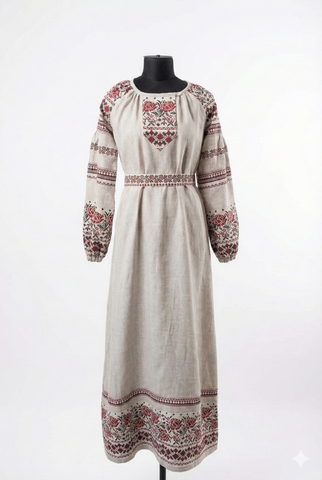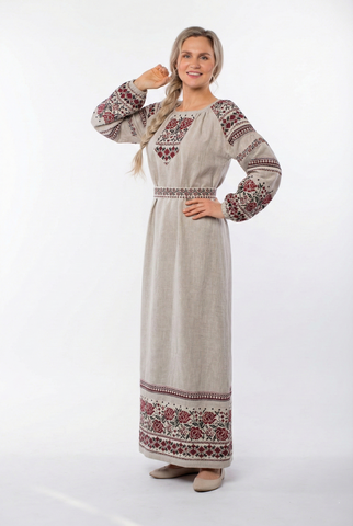 Платье «Льняное поле» - это история про естественную красоту, женственность и спокойную силу природы, воплощённую в ткани. Мягкий, дышащий лён бережно касается кожи, а изящный узор с цветочными мотивами создаёт ощущение уюта, тепла и гармонии.