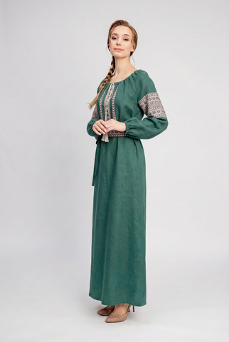 Представляем вашему вниманию уникальное платье, сшитое из высококачественного льна цвета хвоя, которое станет настоящим украшением вашего гардероба!