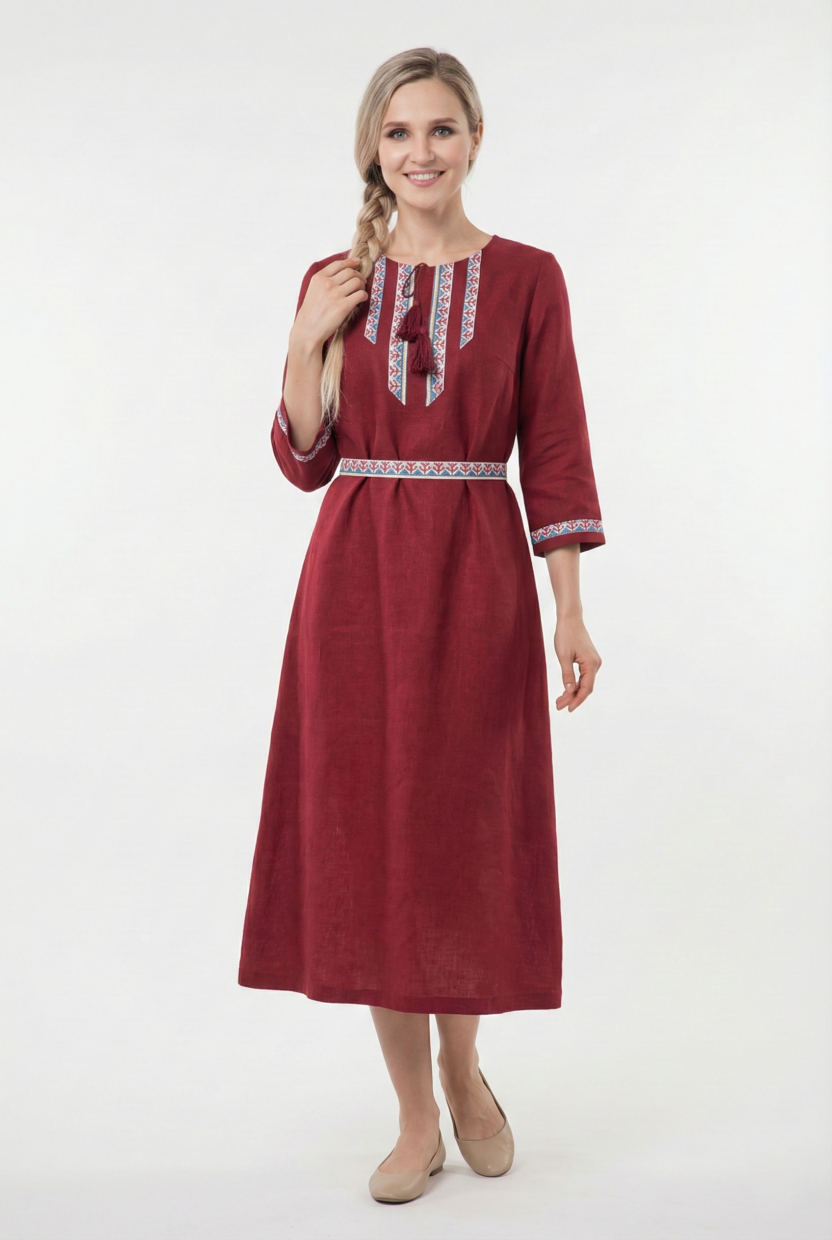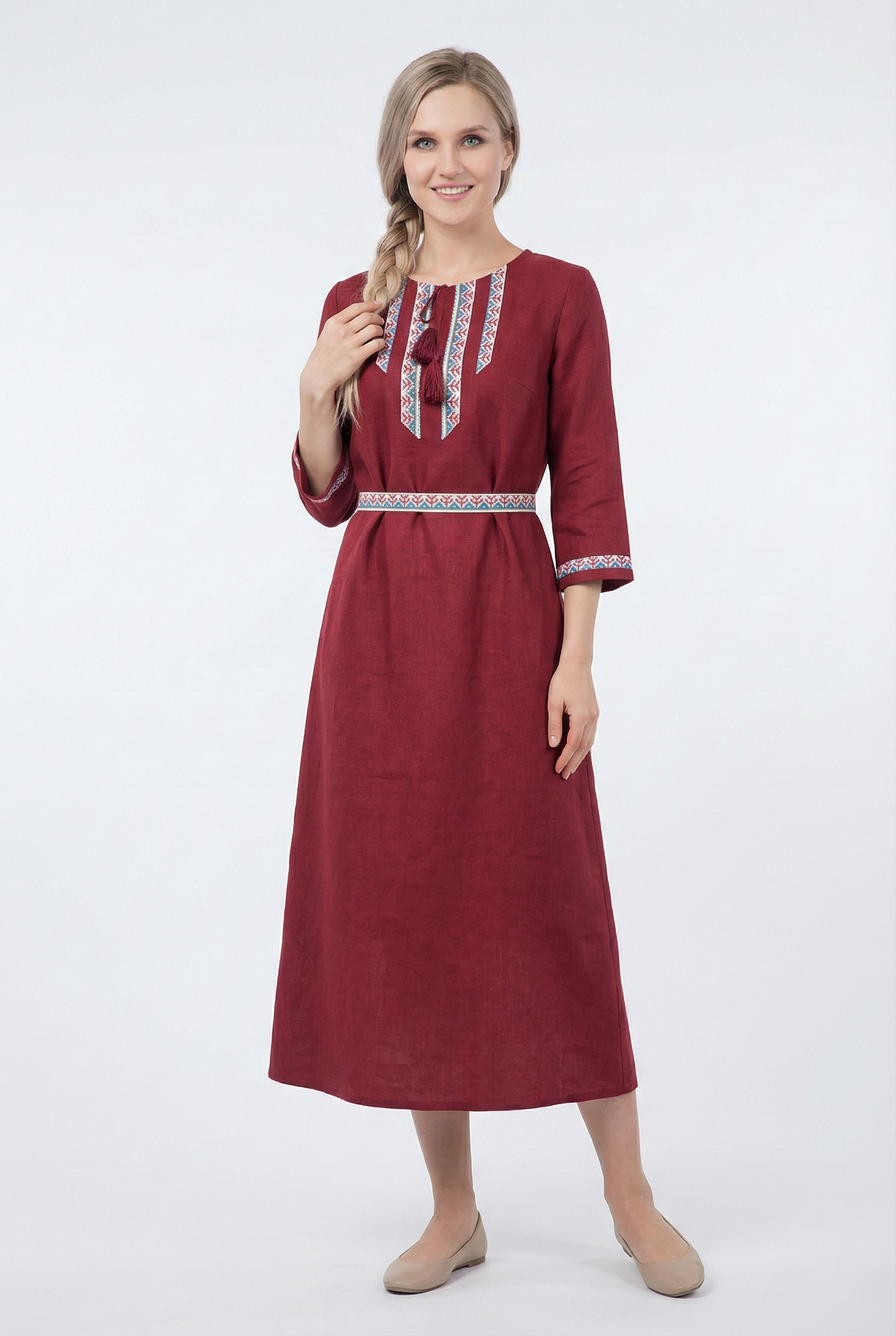 Платье «Вишнёвый полдень» - это переосмысление русского стиля в современном городском образе. Лаконичный крой отсылает к традиционной простоте, а глубокий вишнёвый оттенок придаёт образу благородство и выразительность.