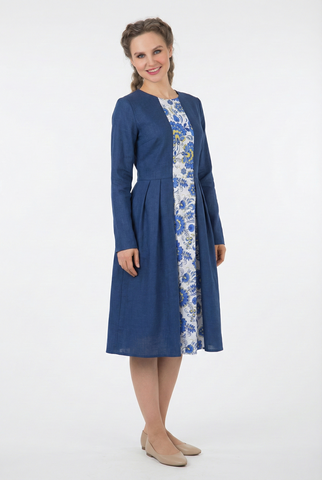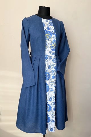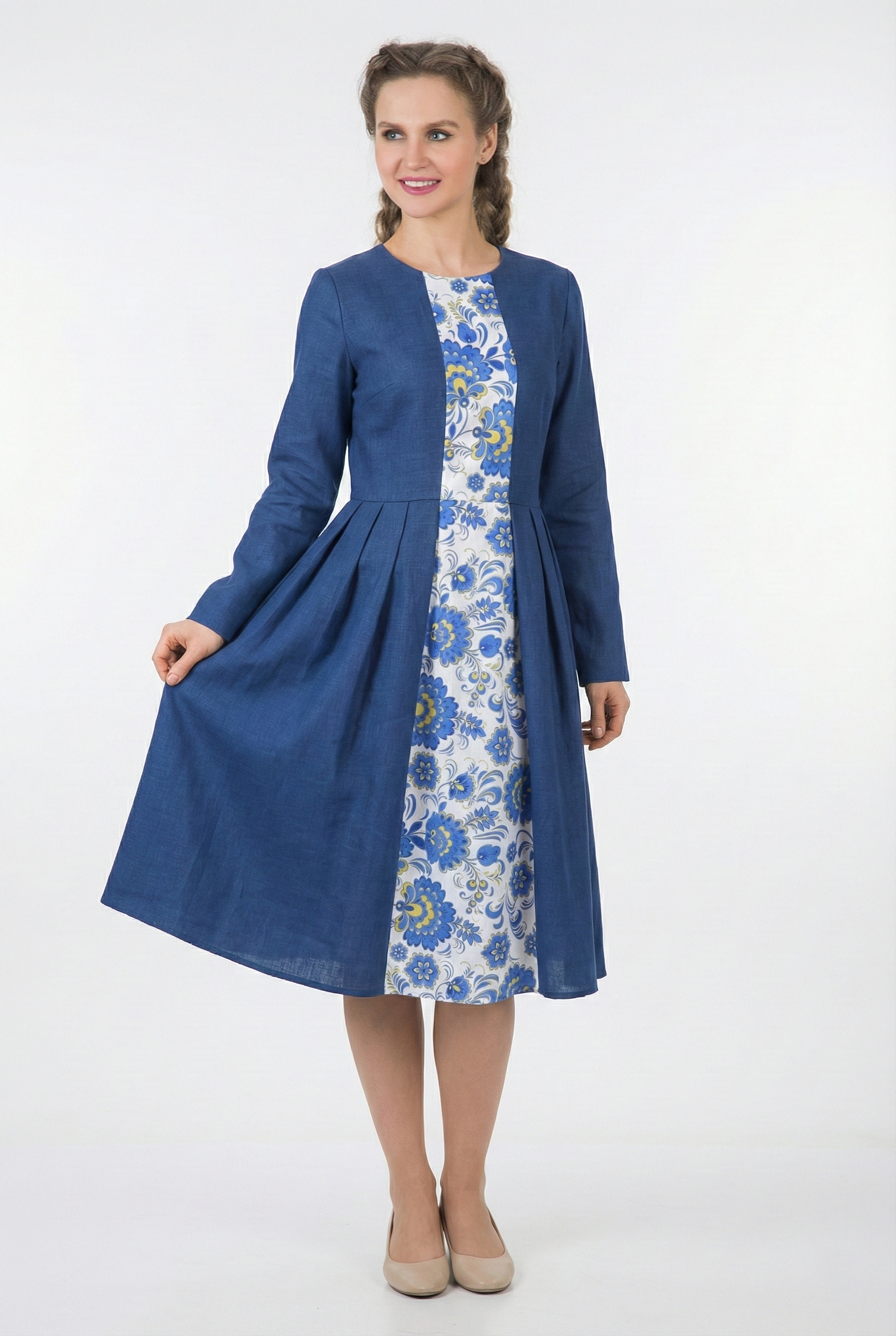Платье Девица выполнено в русском стиле и украшено дизайнерской вариацией стиля гжель. Темно синие тона платья отлично сочетаются с ярким узором. Если вы ищете платье в русском стиле, то платье Девица будет отличным вариантом, чтобы почувствовать себя уникальной. Гарантируем восхищенные взгляды и внимание окружающих!
