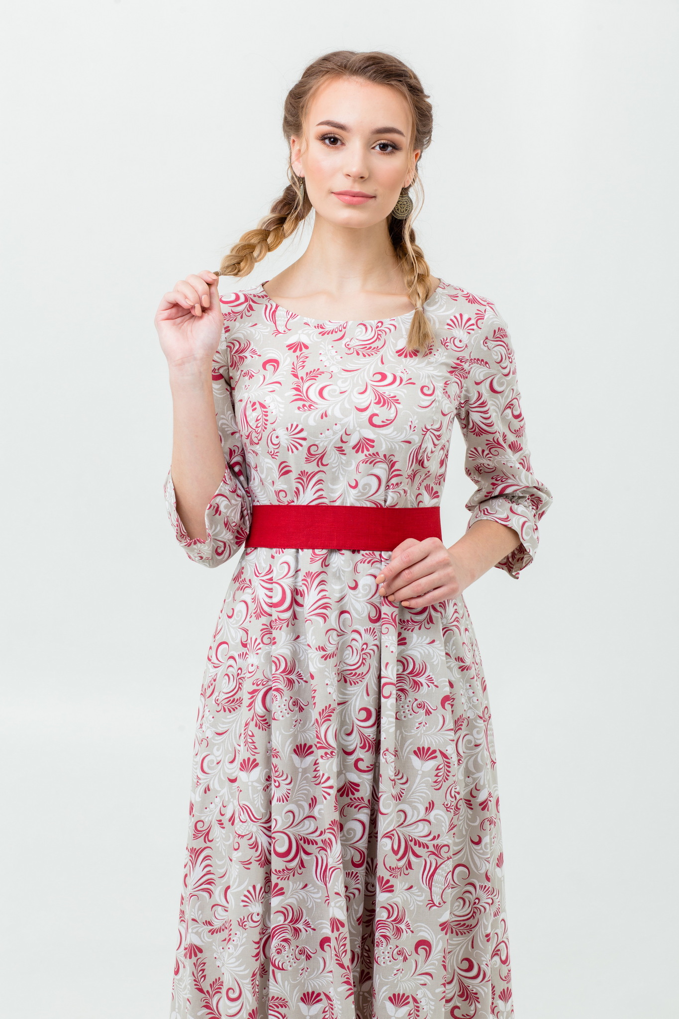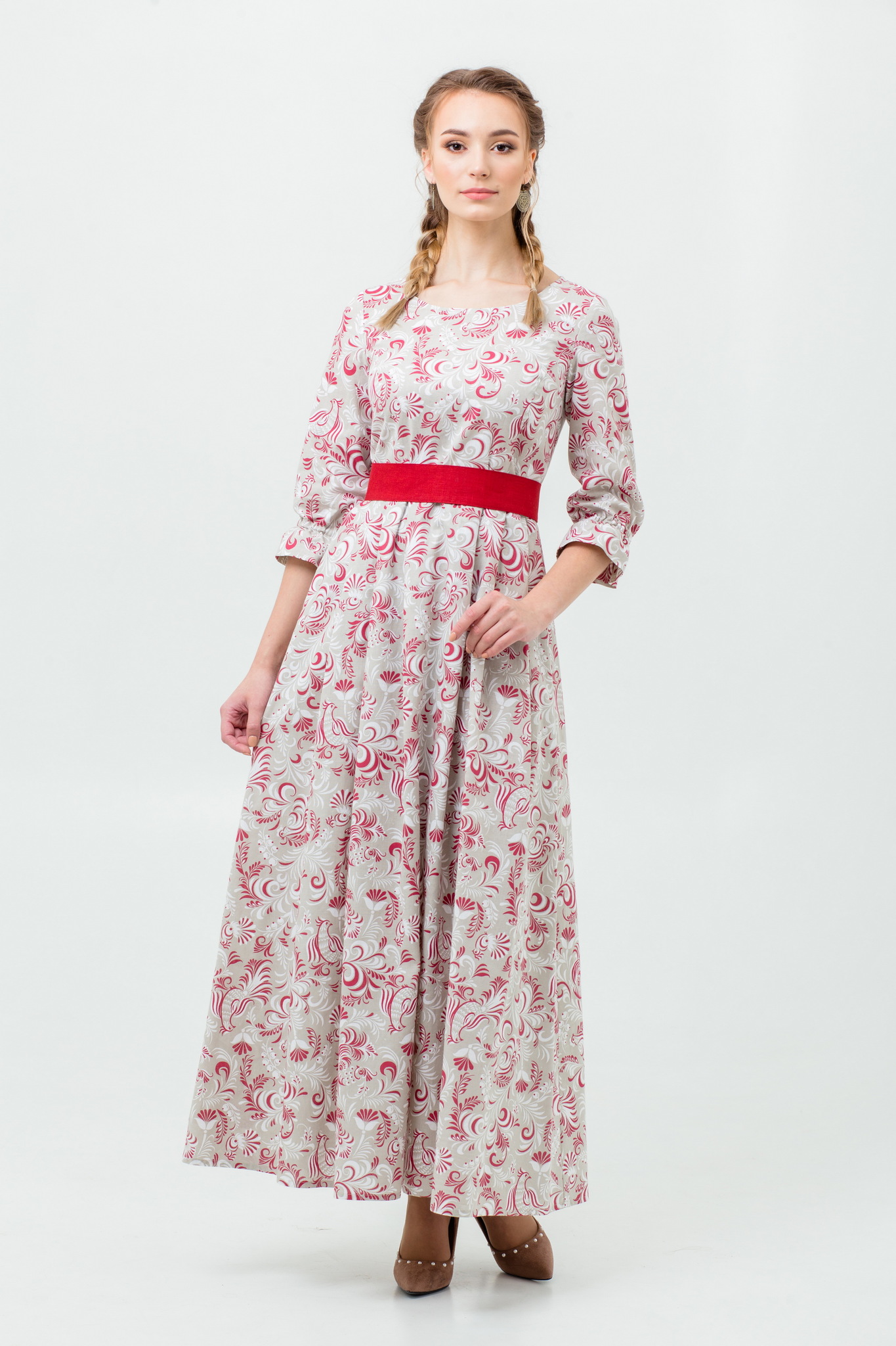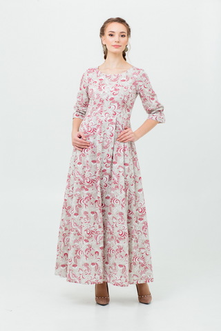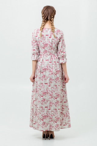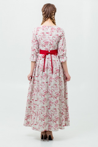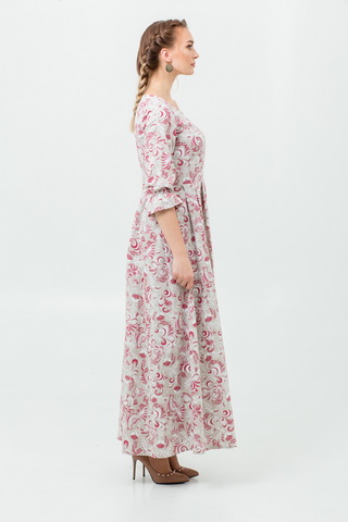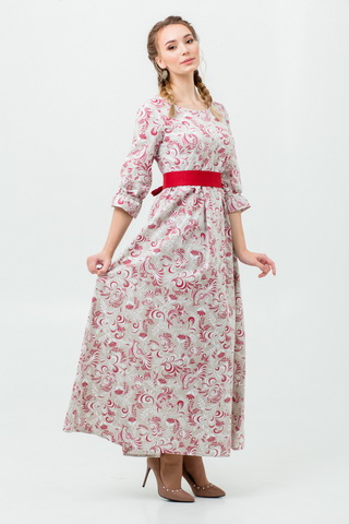 Прилегающий, приталенный, расширенный к низу силуэт. Пояс с завязками из 100% льна в комплекте.