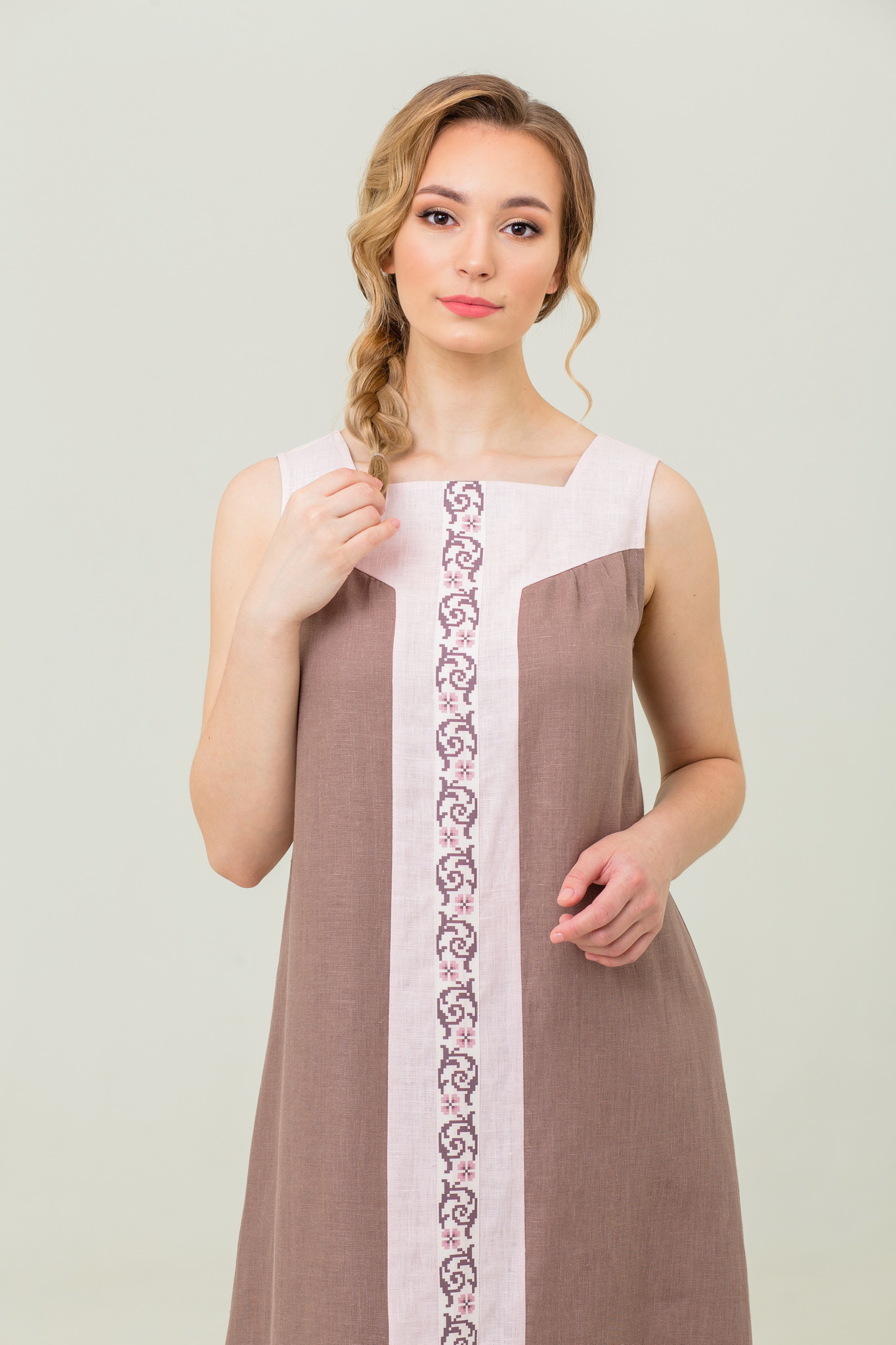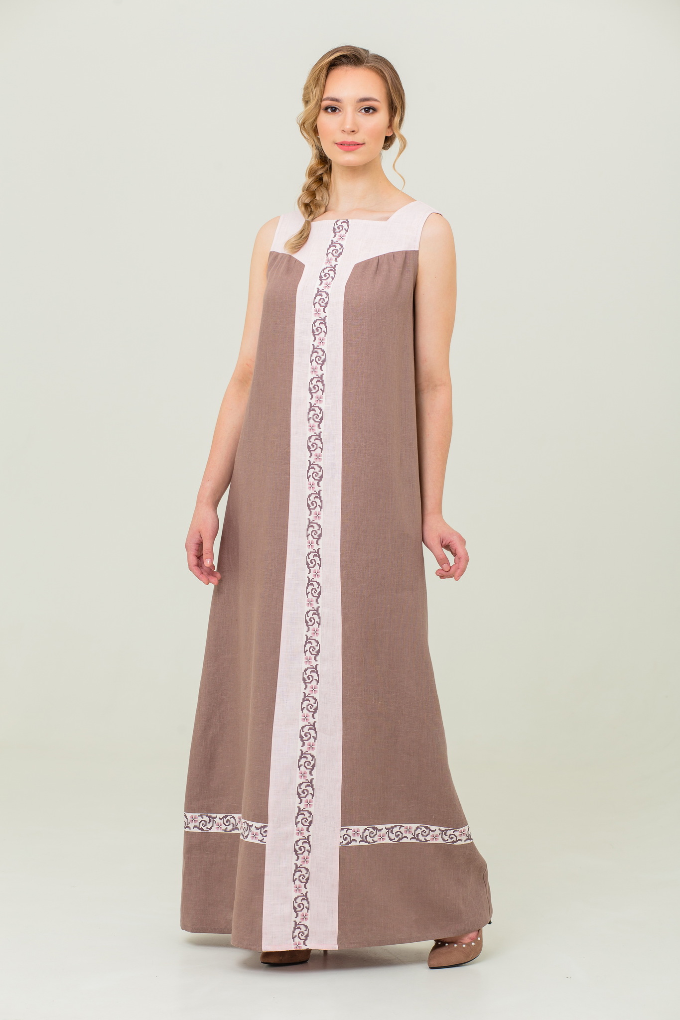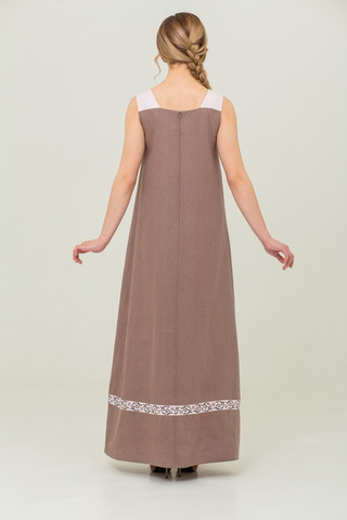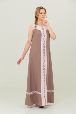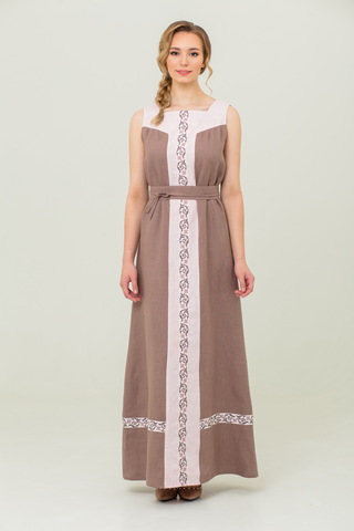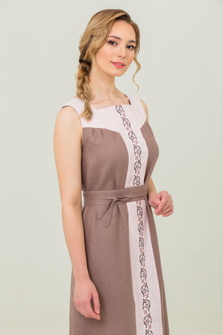 Нежный сарафан из 100% льна и отделкой из хлопка в русском стиле. Пояс в комплекте.